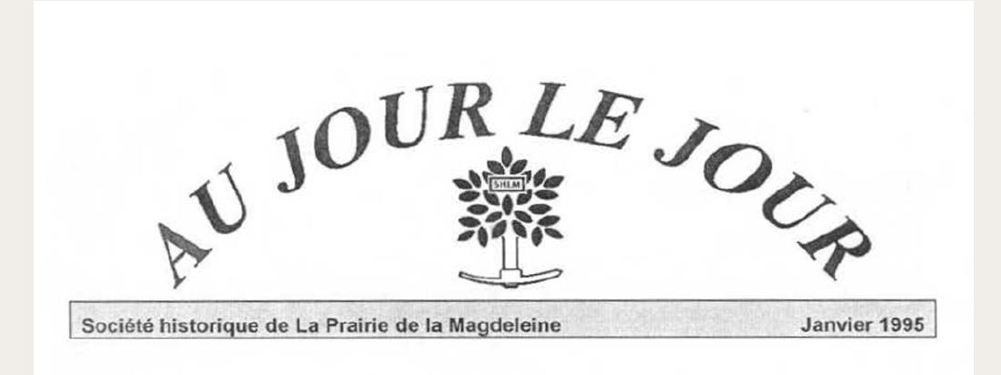 À vous tous, amies et amis de l’histoire, mes vœux les meilleurs pour la Noël et la Nouvelle Année. L’année 1994 fait déjà partie de l’histoire et chacun se demande ce que nous réserve 1995. C’est avec confiance que je regarde l’avenir et j’aime penser qu’il y aura pour chacun de nous des jours de bonheur et de joie. Les membres du Conseil général s’unissent à moi pour vous offrir nos bons vœux. Ensemble, continuons à apporter notre appui à notre Société historique dont le dynamisme est le reflet de l’intérêt que lui portent ses membres.