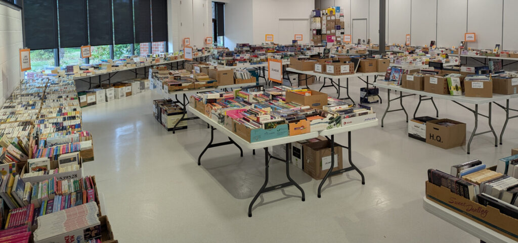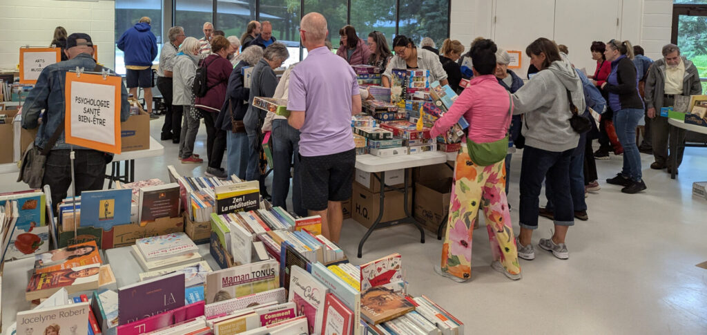 Michel Côté, responsable du comité, tient à remercier tous les bénévoles pour leur implication dans le succès de la vente de livres d’occasion. Leur participation a été essentielle à chaque étape : collecte des livres à la bibliothèque, tri et nettoyage des centaines de livres dans les locaux, mise en place de la salle, accueil et aide aux acheteurs lors des journées de vente, et rangement le dimanche en fin de journée.