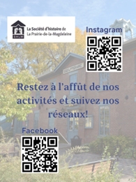 des personnes qui n’auraient jamais entendu parler de la Société d’histoire. Les capsules produites, de nature tant informative que ludique, ont une durée moyenne d’environ une minute. Des capsules d’une si courte durée peuvent sembler insuffisantes pour transmettre des connaissances, mais avec une approche vulgarisatrice, nous avons réussi à garder ce court format tout en respectant la mission éducatrice de la Société. Nous avons réussi à produire sept vidéos, toutes aussi intéressantes les unes que les autres. Lors du filmage, nous avons eu recours à notre magnifique costumier afin d’habiller nos « vedettes » de vêtements dignes de l’époque. Pour ma part, même si je ne suis apparu qu’une fois dans une des vidéos, j’ai joué un rôle important en tant que monteur. En effet, tous les effets spéciaux, collages et bien plus que vous voyez ont été réalisés par moi-même. Pour leur part, les capsules font fureur sur notre compte Facebook et montent lentement en popularité sur notre compte Instagram. En bref, le lancement du compte Instagram a été un projet auquel j’ai pris beaucoup de plaisir à participer et que j’ai très hâte de reprendre et de bonifier l’an prochain ! Si vous ne l’avez pas encore fait, s’il vous plaît, prenez le temps d’aller suivre notre compte Instagram @Shlaprairiem afin de nous aider à atteindre un plus large public.